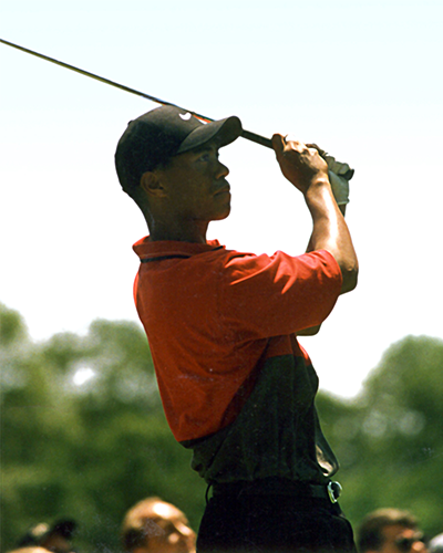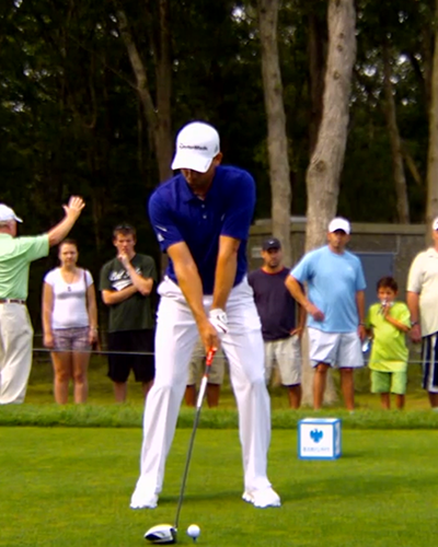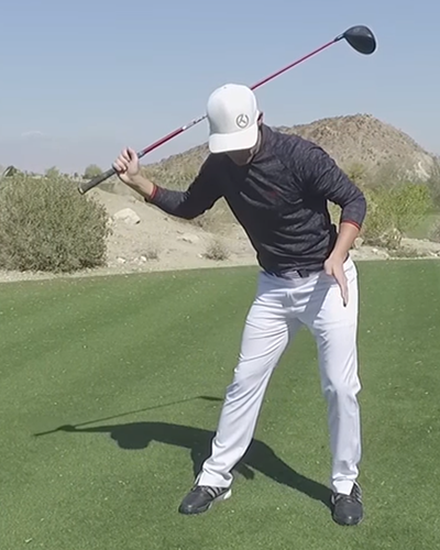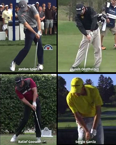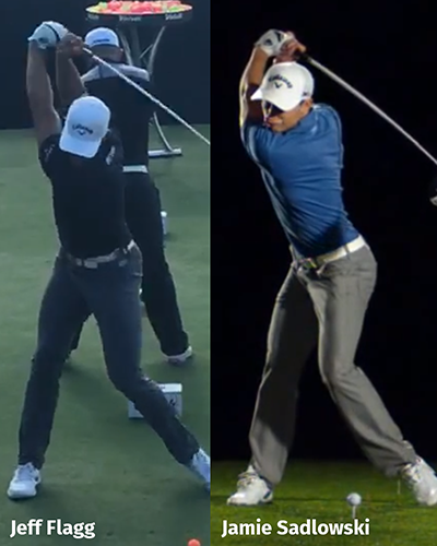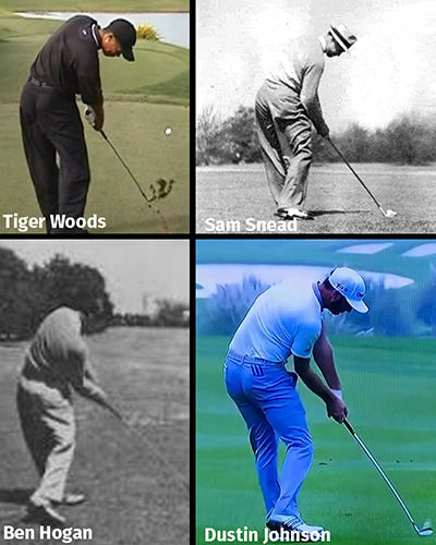 All great players have exceptional rotation. Some move a little bit laterally (like Hogan and Tiger), but no great players have significant lateral movement. Think of trying to close a door but the hinge is moving away – makes closing the door much tougher.